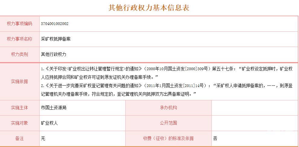 [其它行政职权]采矿权抵押备案